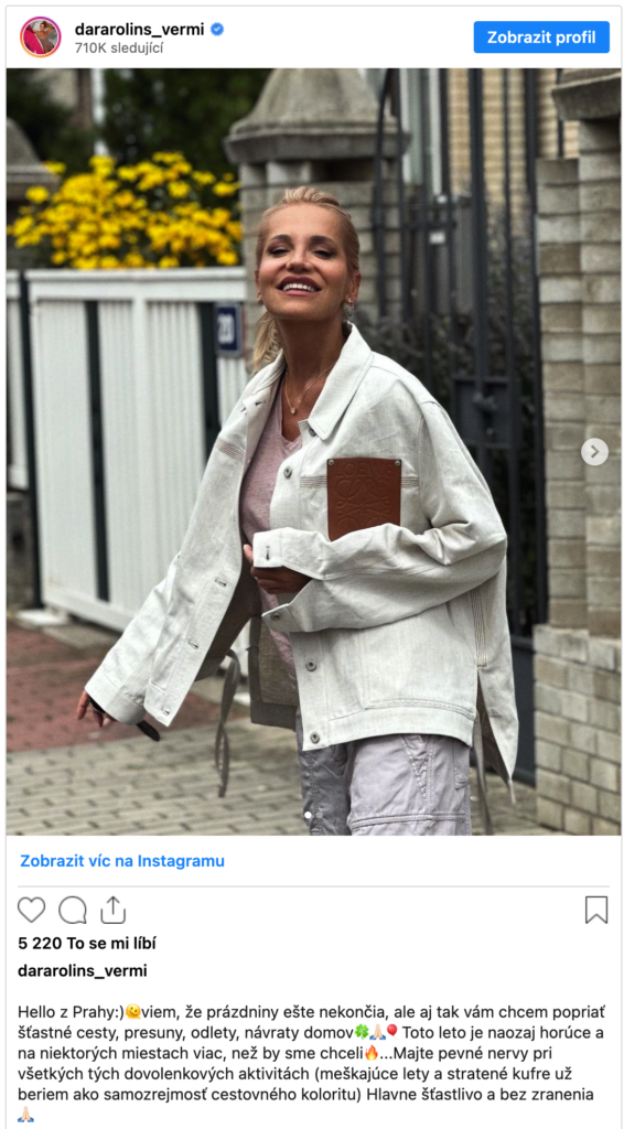 Na svém Instagramu sdílela velký vzkaz o cestování, a také o tom, že během letu každý cestující musí mít pevné nervy. Podle Dary, lety často mají zpoždění, a s tím žádný cestující nic neudělá.