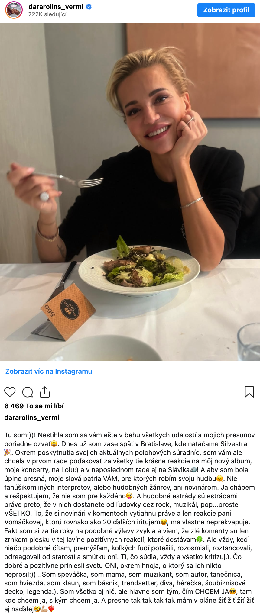 Dara ve svém vyjádření připomněla, že po více než třech dekádách v hudební branži velmi dobře ví, co je věcná kritika a co je pouhá zášť. Odkázala na tisíce fanoušků, kteří ji podporují, chodí na koncerty a sledují její tvorbu. Právě jim věnovala vzkaz, že stojí přesně tam, kde být chce, a že ji baví to, co dělá.