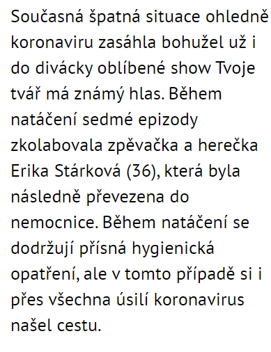 Erika Stárková zkolabovala během natáčení Moje tvář má známý hlas.