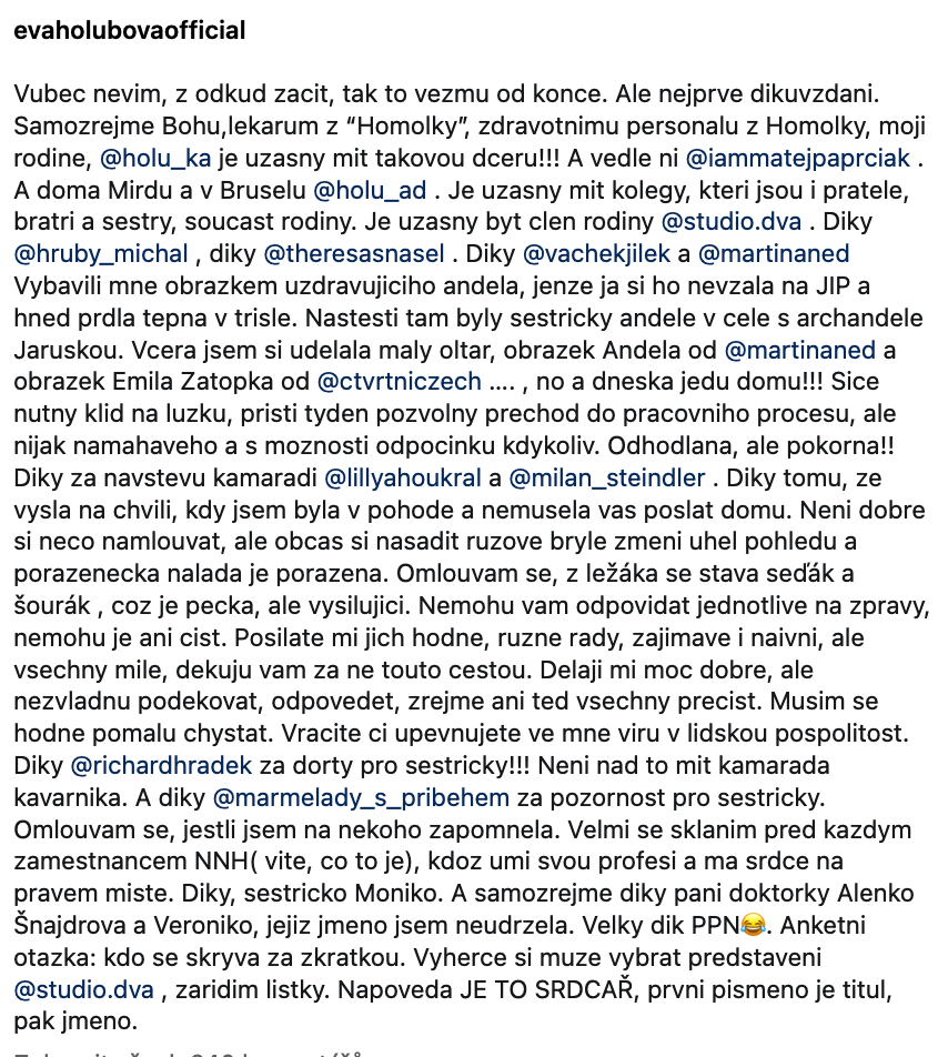 Tento příběh nejen potvrzuje Holubovou jako vysoce ceněnou osobnost veřejného života, ale také ukazuje pevnost lidského ducha tváří v tvář nepřízni osudu. Jak sama Eva říká, klíčem k uzdravení je pozitivní myšlení a obklopit se lidmi, kterým na vás záleží. Teď, když je nejhorší za ní, může se těšit na nové kapitoly, které před ní stojí, jak ve své kariéře, tak v osobním životě.