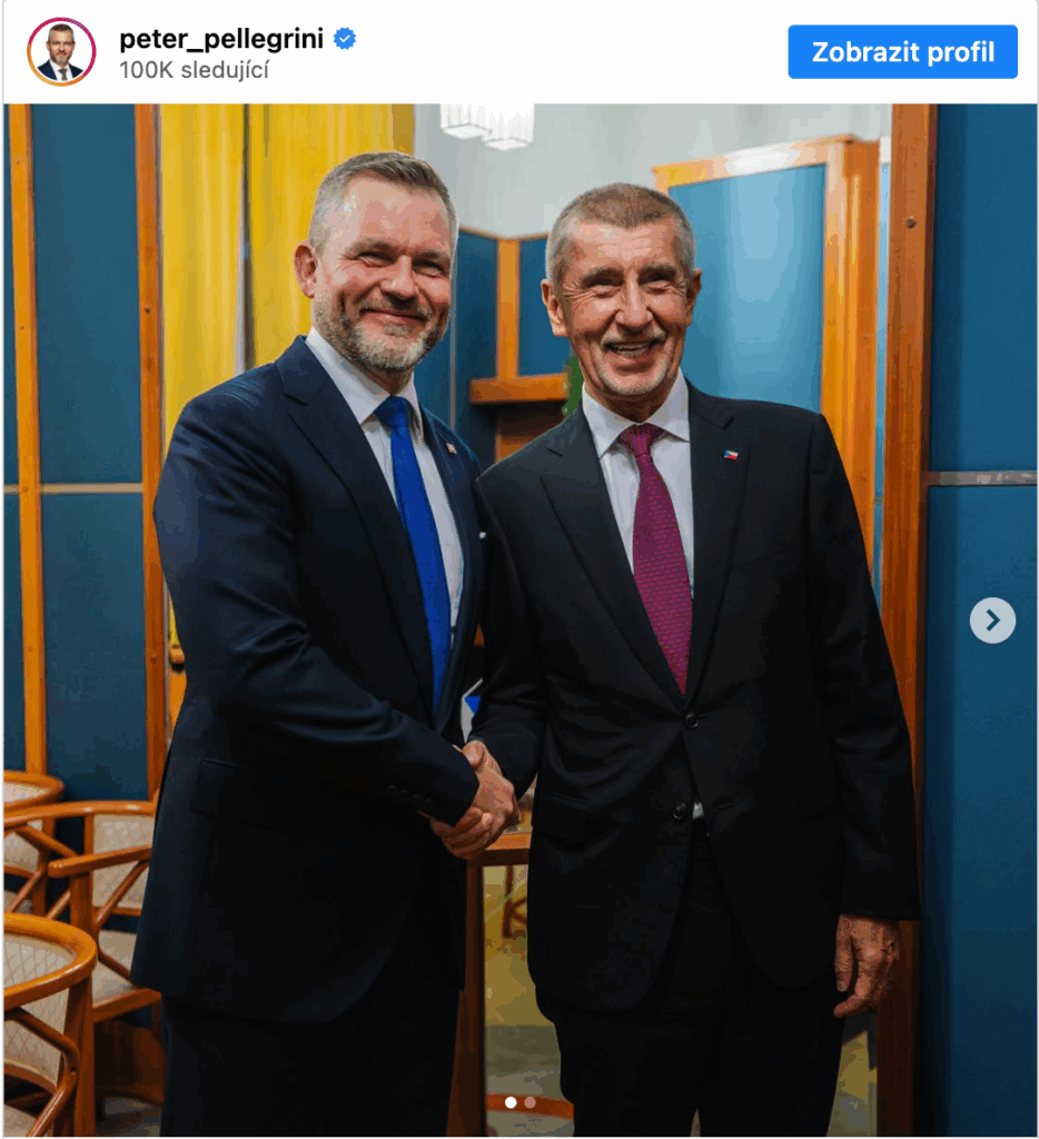 Pellegrini a Babiš si také vyměnili názory. Slovenský prezident o tom následně informoval své sledující na sociálních sítích.