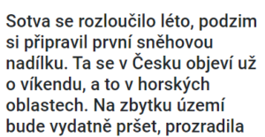 Česko čeká překvapení: O víkendu by se měl objevit první sníh