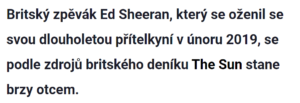 Ed Sheeran se stane otcem! Na miminko se může těšit už brzy!