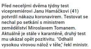 Hamáček je v karanténě už 13 dní a má druhý pozitivní test: Rapidní hubnutí