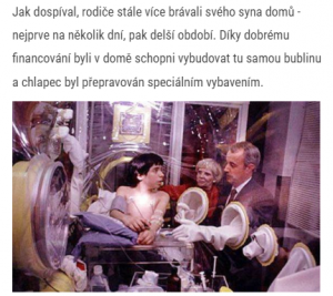 Hned po narození musel být umístěn do této plastové bubliny, ze které se už nikdy nedostal. Co se s chlapečkem stalo?