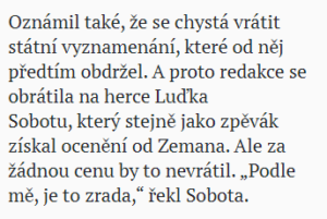 Luděk Sobota nesouhlasí s dopisem Hůlky: Jde o zradu