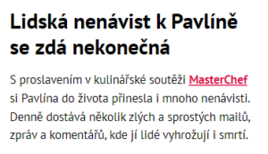 Pavlína o nenávisti lidí: Je to příšerné, přestala jsem to zvládat