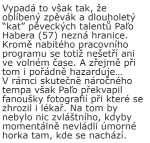 Pavol Habera riskuje své zdraví! Poté, co přidal na sociální síti tuto fotografii, promluvil jeho lékař!