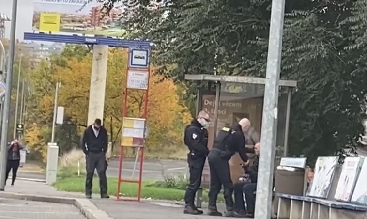 Policista bez roušky zfackoval starého pána. Toto video nyní šokuje celé Česko
