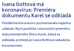Premiéra dokumentu Karel se musí odložit: Ivana Gottová má koronavirus