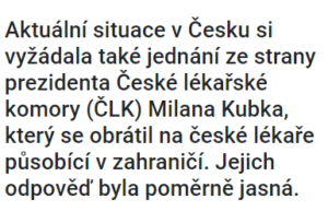 SOS pro české lékaře v zahraničí: Tohle prezident ČLK nečekal