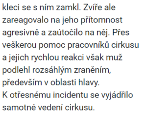 Tragédie ve slavném Cirkusu: Medvěd rozsápal jednoho ze zaměstnanců