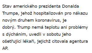 Trumpův stav byl vážný: Po prokázání nákazy koronavirem byl napojen na dýchací přístroje