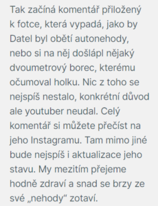 Youtuber Datel skončil v nemocnici: krvavá fotka, ze které děsí