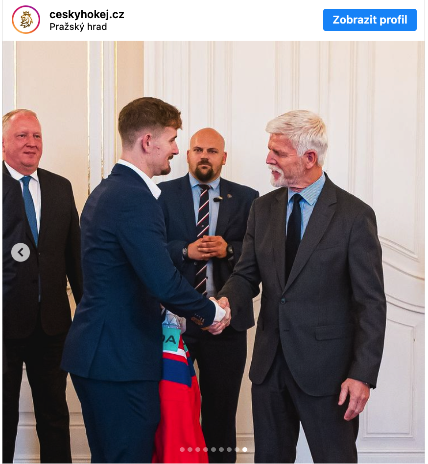Hokejisté na Pražském hradě předávali prezidentovi věci: Jak jim pogratuloval Petr Pavel?