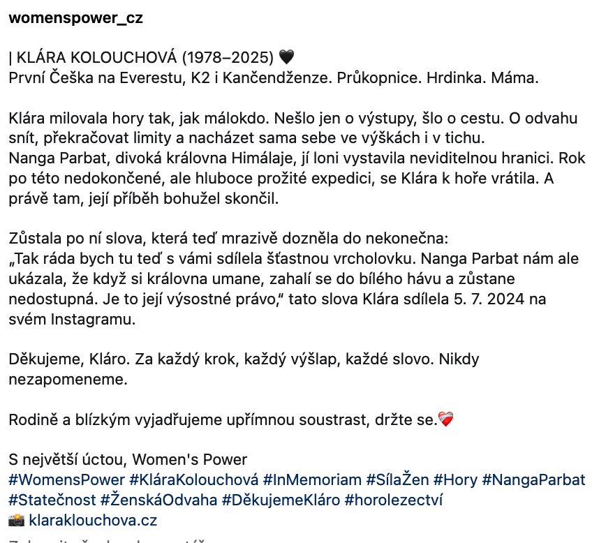 Kláru však dnes veřejnost vnímá nejen jako ženu, která podlehla hořící vášní hor, ale i jako státost a sílu. Její příběh bude rezonovat dál – výzva k úctě k risku, odvaze a lidské touze po objevování neznámého.
