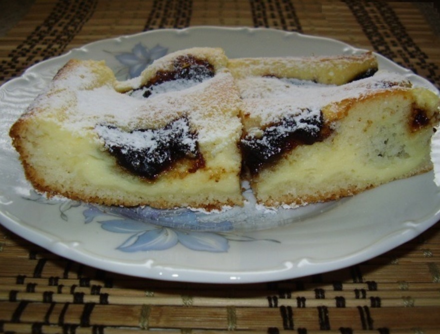 Hotový koláč posypeme moučkovým cukrem nebo kokosem.