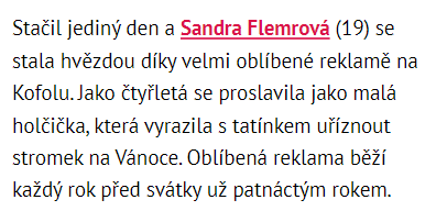 Nenee, já nemusím, já už ho vidím! Tuto oblíbenou reklamu na Kofolu má rád snad naprosto každý a neexistuje Čech, který by ji neznal. Jak dnes vypadá malá holčička z této reklamy? Vyrostla z ní krásná dívka. Podívejte se do naší galerie.
