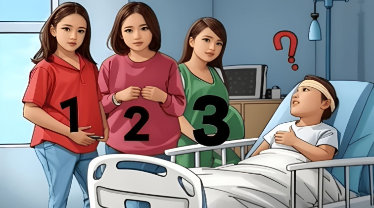Na obrázku vidíme tři ženy, které vypadají těhotné, a mladého muže, který leží na nemocničním lůžku. Příběh má zcela nečekanou zápletku. Muž byl po vážné autonehodě několik měsíců v kómatu a po probuzení si nepamatuje téměř nic. Když otevřel oči, spatřil tři ženy. Každá z nich tvrdí, že je jeho manželka a zároveň čeká jeho dítě.
