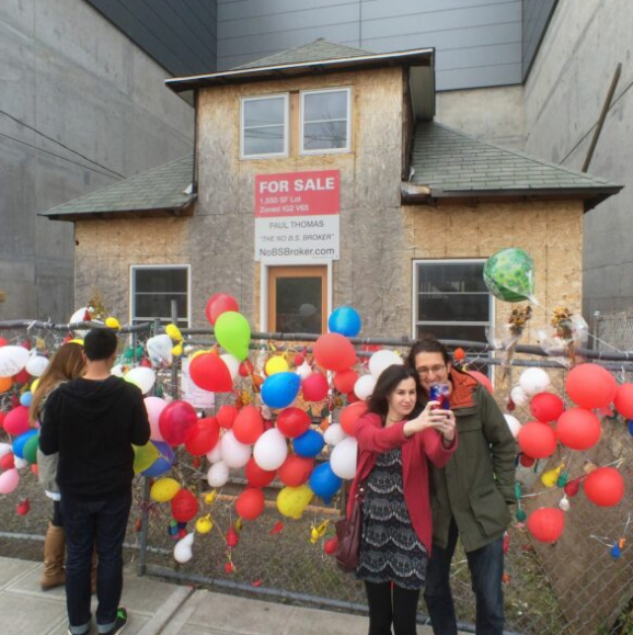 V okolí jejího domu vyrostlo nákupní středisko, které dnes stojí přímo vedle. Navzdory obrovské výstavbě zůstal její dům stát, jako tichý svědek minulých časů a nezlomné vůle jedné ženy. Dům zdobí desítky balónků, které připomínají filmový příběh o starém muži, který se vydal na dobrodružství.