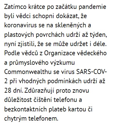 To, že se koronavirus dokáže držet nějakou dobu například na telefonech, není žádnou novinkou.