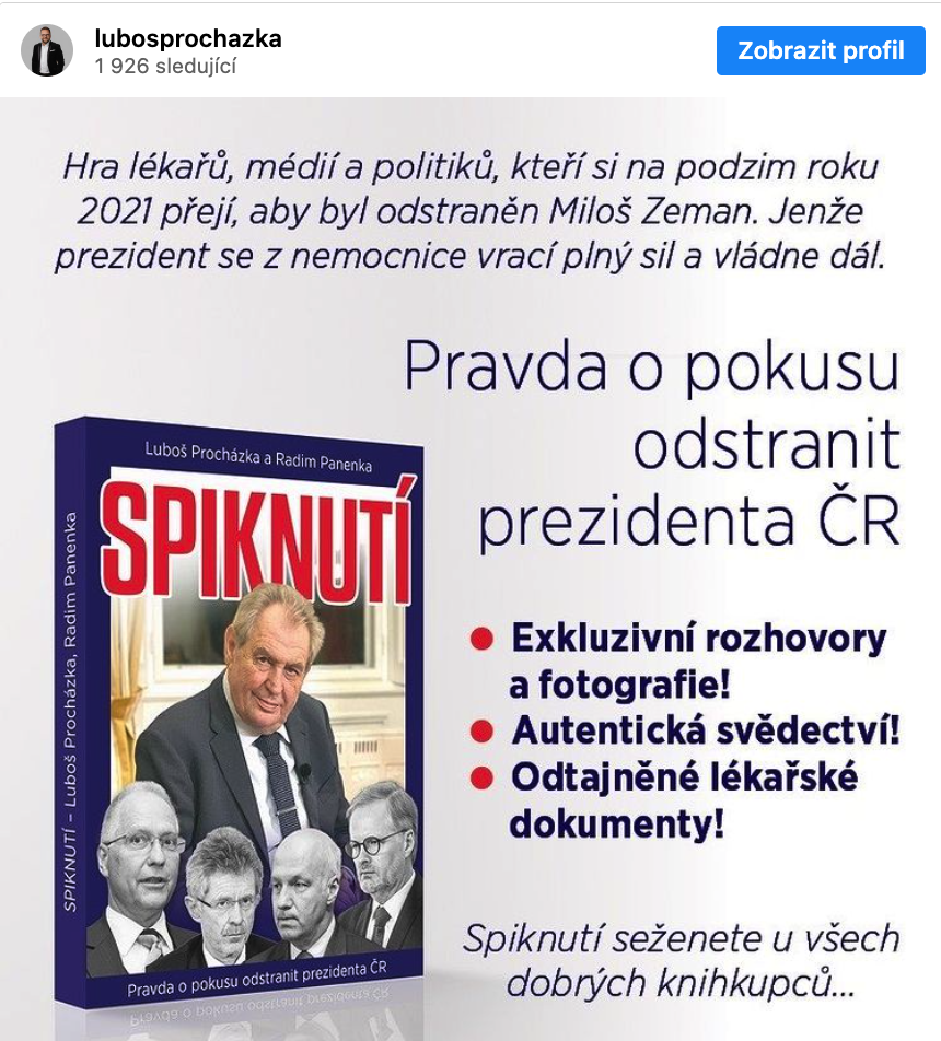 Spiknutí. Tak se jmenuje kniha o hospitalizaci hlavy státu v Ústřední vojenské nemocnici po volbách do Poslanecké sněmovny Parlamentu ČR na podzim 2021.