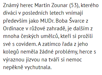 Mezi celebrity, které se nakazily koronavirem a následně promluvily o průběhu nemoci, patří i Martin Zounar.