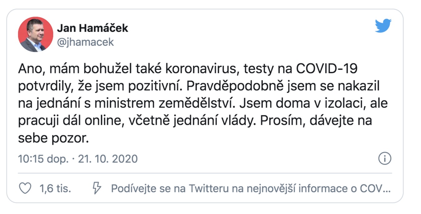 Ministr Hamáček se nakazil koronavirem. Víme od koho ho zřejmě chytil