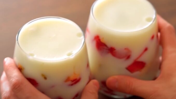 Hledáte rychlý, osvěžující a přitom naprosto jednoduchý dezert? Tento mléčný pohár je ideální volbou. Připravíte ho bez želatiny, bez mixéru a za pár minut. A chutná tak dobře, že ho budete chtít dělat celé léto.