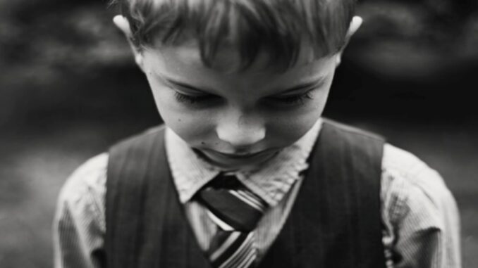 Venku pršelo a vodní kapky stékaly po okně v dlouhých modrých pruzích. Chlapec jí něco stále říkal, jako by se ji snažil přesvědčit nebo o něčem informovat. Když se však žena náhle prudce otočila k němu, přitáhla si ho za ruku, za kterou ho předtím tahal, a s hněvem mu vyjela do tváře.