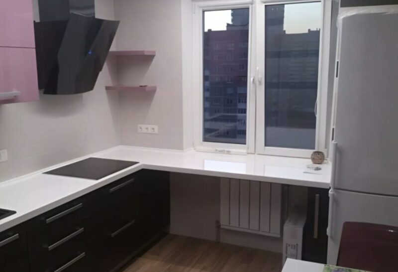 Nastavte parapet okna nebo přidejte deskuPokud se vám nelíbí vzhled svého chladiče, i když je nový, nabídku návrhářů řešení je zakrytí desk desk nebo prodloužení okenního parapetu.