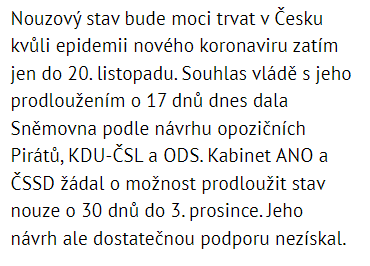 Vláda schválila prodloužení nouzového stavu.