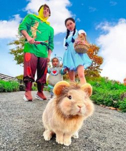 Roztomilý králíček miluje pozornost, kterou jeho oblečení získává, a dokonce pózuje pro kameru.