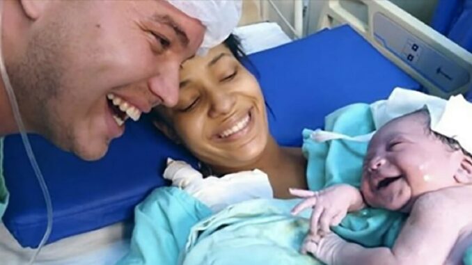 Novorozenec se usmívá na tátu poté, co měsíce poslouchal jeho hlas v maminčině břiše