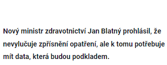 Nový ministr zdravotnictví Blatný promluvil o plánech do budoucna: Co bude dál?