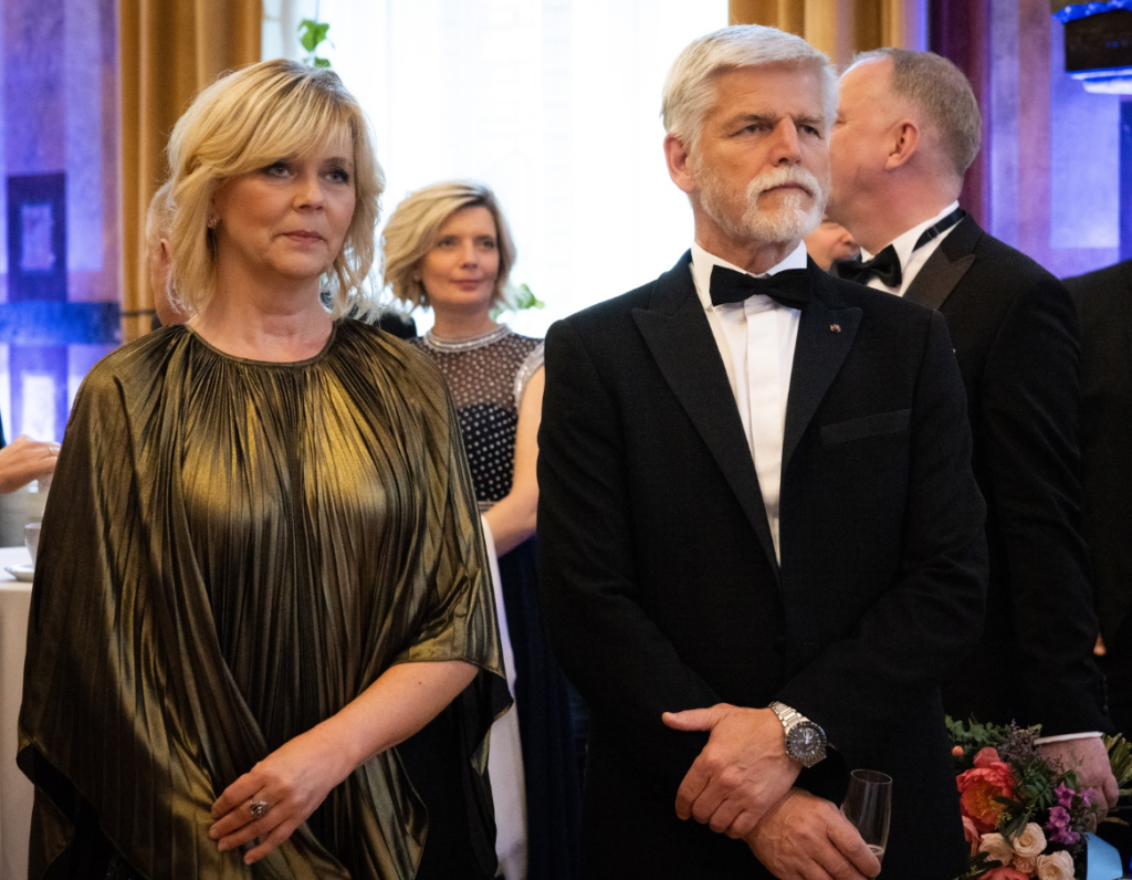 Na druhé straně prezident Petr Pavel zvolil klasický černý smoking, bílou košili a černý motýlek. Jeho elegantní vzhled dokazoval, že hlava státu dokáže reprezentovat Českou republiku se stylem a vkusem. Na ruce měl stříbrné hodinky, které dodávaly jeho outfitu ještě sofistikovanější nádech.