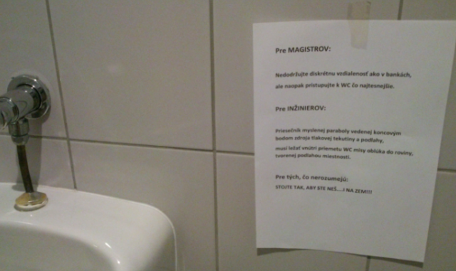 No, některé uklízečky jsou z mužského řádění na toaletách skutečně smutné, jiné to berou s humorem a nad pisoáry lepí opravdu vtipné vzkazy. To udělala i hrdinka dnešního příběhu, uklízečka ze Slovenska.