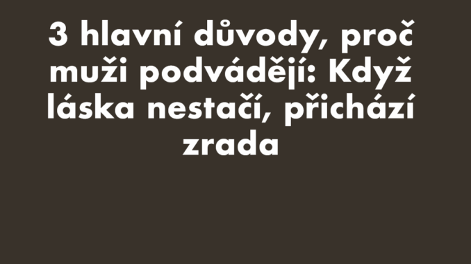 Nevěra bývá pro vztah devastující ranou, která bolí hluboko. Zvlášť když žena věří, miluje a spoléhá. Co ale skutečně stojí za tím, že muž sáhne po jiné? Představujeme tři nejčastější důvody, proč muži ztrácí věrnost – a často i respekt.