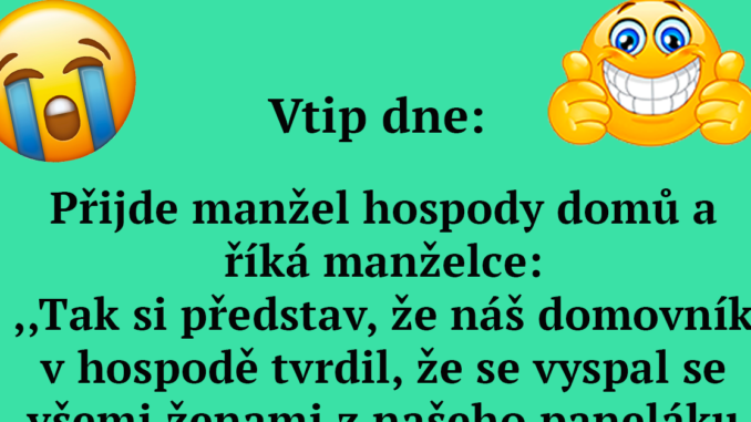 Vtip na zaručeně lepší náladu: Namyšlená fuchtle z přízemí Publikováno 30. 11. 2022 Autor: Dominik Bobylev foto: facebook.com Pokračování vtipu si otevřete níže. Další články Milan Peroutka v slzách: Milovaná babička odešla, do nebe. Poslal jí dojemný slib Leoš dojatý malou Alex: Promluvil o tom, jak ho dcera dokázala překvapit Jitka Boho po rozchodu s Langmajerem: Klid místo slz a jeho tichý ústup z jeviště Selfie z toalety a bouře na sítích: Eva Decroix jednou fotkou rozčílila Česko Monika Absolonová v slzách: Přišla o milovaného člena rodiny Popelčin princ po čtyřnásobném bypassu: Vyhublý Trávníček se objevil na veřejnosti a fanoušci nevěřili vlastním očím