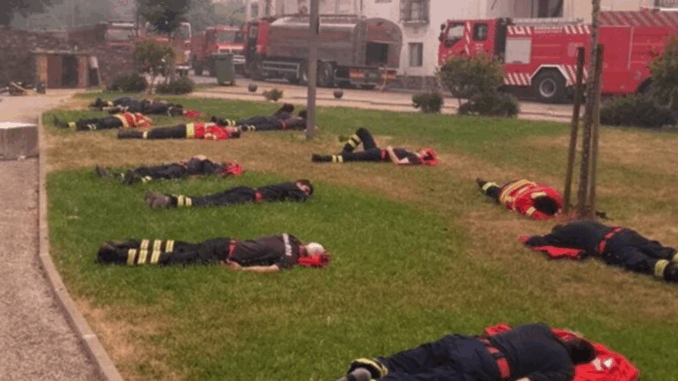 Přestávka mezi směnami hasičů bojujících s rozsáhlými lesními požáry v centrálním Portugalsku se stala virálním fenoménem. Na fotografiích, které obletěly sociální sítě, je vidět skupina vyčerpaných hasičů odpočívajících na trávníku, zahalených kouřem.