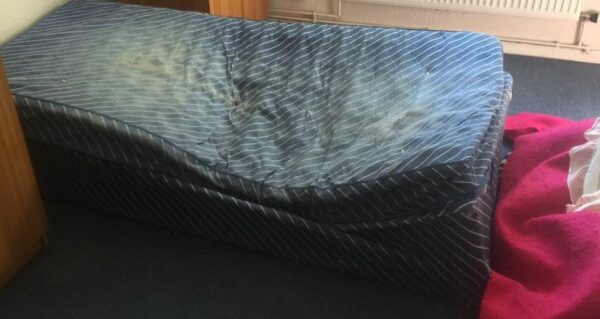 Byt byl v zoufalém stavu: starší žena přespávala na zničeném matraci. Dům byl neopravitelně nepořádný, nábytek starý a špinavý, a lednice zela prázdnotou.