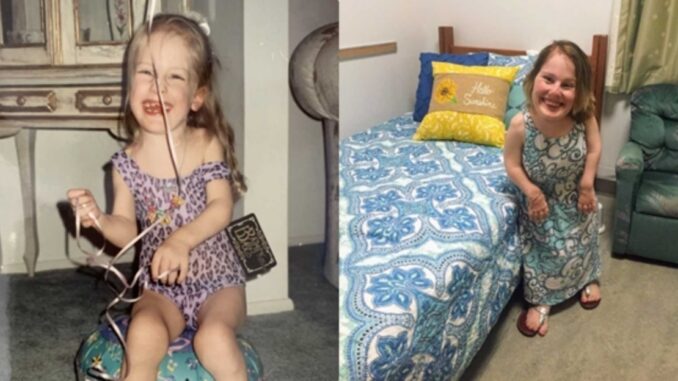 Žena jménem Megan Grannanová se narodila s onemocněním zvaným metatropická dysplazie. Jedná se o vzácnou poruchu, která má za následek nanismus.